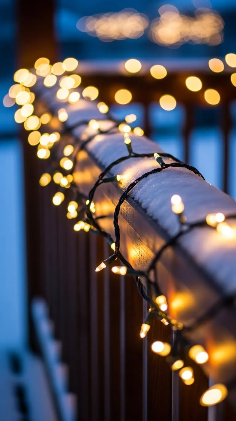 Icicle lights give your roofline a soft winter sparkle. Clip them securely so they hang straight. Pick a warm white tone to keep the look calm. If you prefer color, choose a gentle pattern so it doesn’t feel too bold. Install slowly to keep the lines tidy. These lights pair well with simple porch decorations and stay bright through long nights.