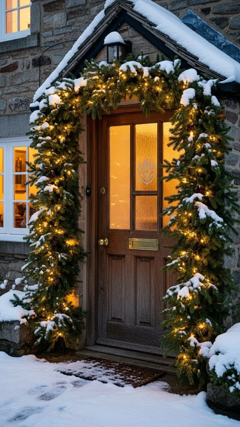 2. Evergreen Garland Around the Door