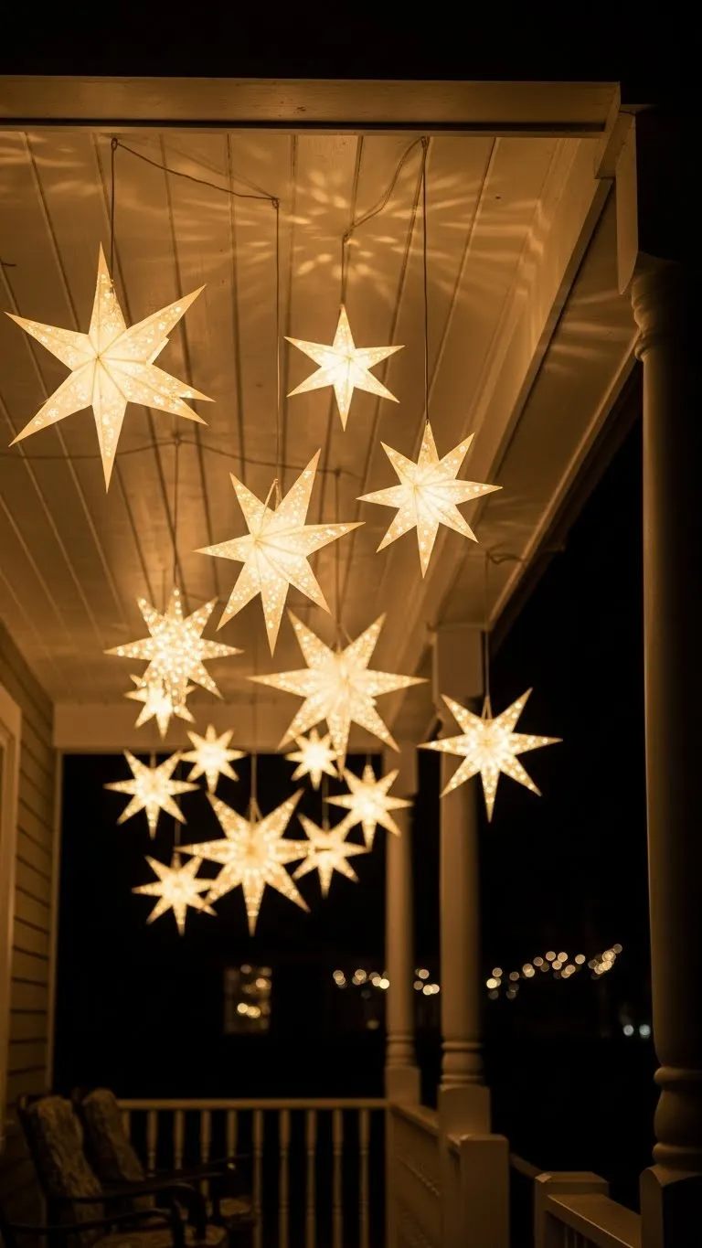 Hang star lights from your porch ceiling. Pick soft tones so they blend with the rest of your decor. Keep the spacing balanced for a tidy look. If you want extra detail, hang them at different heights. These stars look lovely at night and take little time to install.