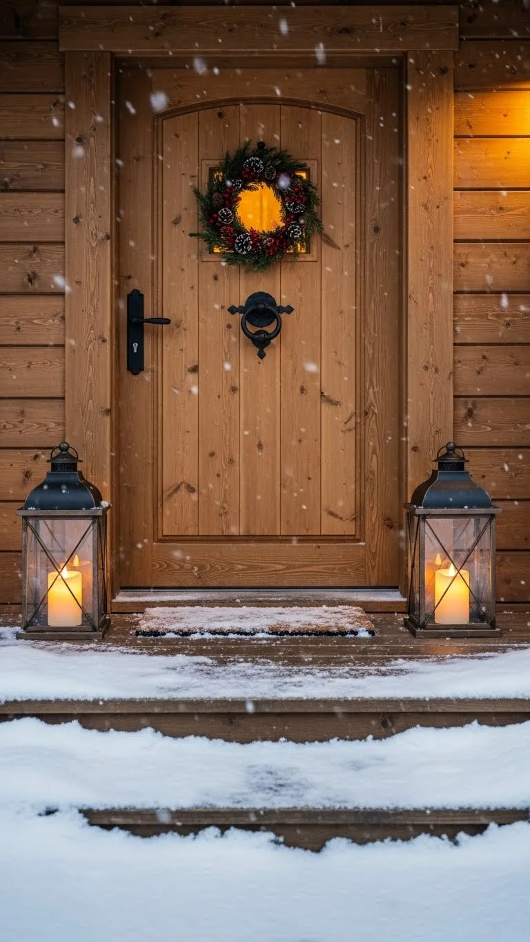 Lanterns add warm light to any porch or step. Choose flameless candles so they stay safe outdoors. Place two lanterns on each side of the door for a balanced look. You can fill the bottom with pine sprigs or small ornaments. This adds color without cost. If you want height, set one lantern on a sturdy crate. Keep the colors simple so your space doesn’t feel busy. Lanterns last year after year and take almost no time to set up. They stay bright even on windy nights.