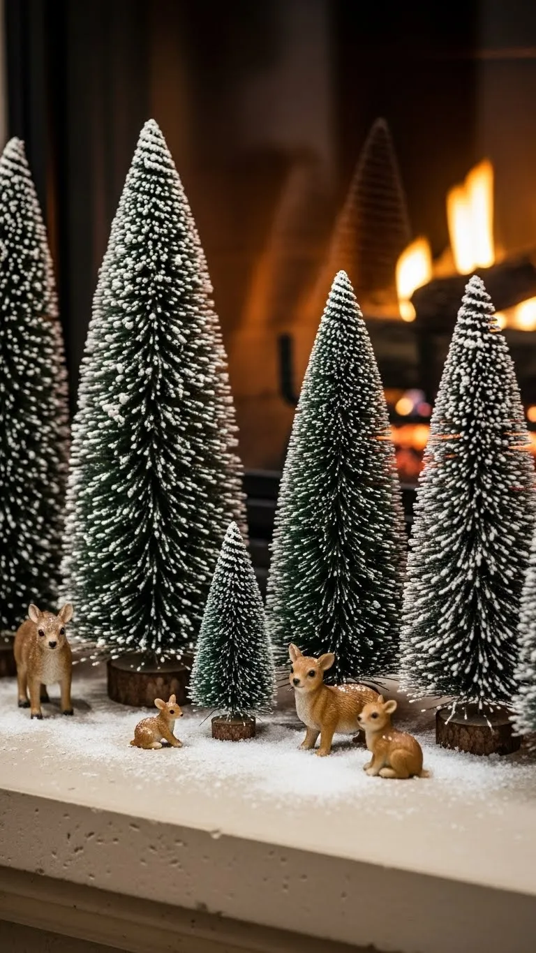 Bring the outdoors in with a snowy woodland theme. Use small trees, faux snow, and miniature animal figurines. Layer different heights for dimension. A DIY snow effect can be created with cotton or baking soda. This enchants children and adults alike, creating a playful yet cozy scene on your fireplace. It’s affordable and visually appealing, perfect for family-friendly decor.
