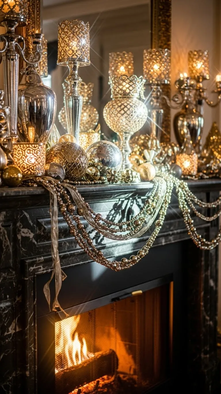Add metallic accents for sparkle and sophistication. Gold, silver, or copper ornaments bring festive shine. Combine with greenery or neutral tones to balance. Metallic spray paint can transform cheap ornaments or pinecones. Even small touches like candle holders or baubles elevate the look without spending a lot. Metallic decor catches the firelight beautifully, creating warmth and elegance.