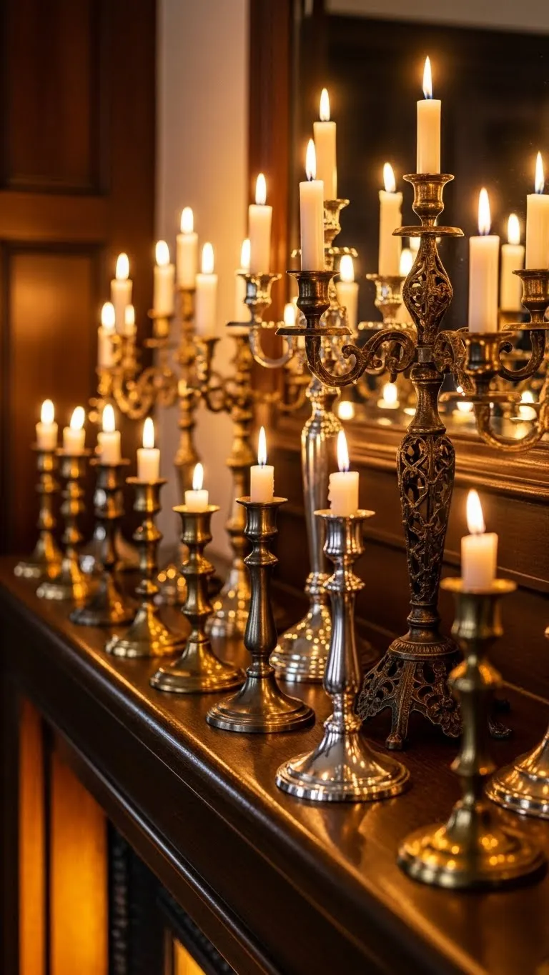 Use vintage candlestick holders for elegance. Arrange them with varying heights and candle colors. They are inexpensive if sourced from thrift stores. Pair with greenery or small ornaments for festive charm. Even a single statement holder can make an impact. Vintage pieces add character and bring a classic holiday feel without being costly.