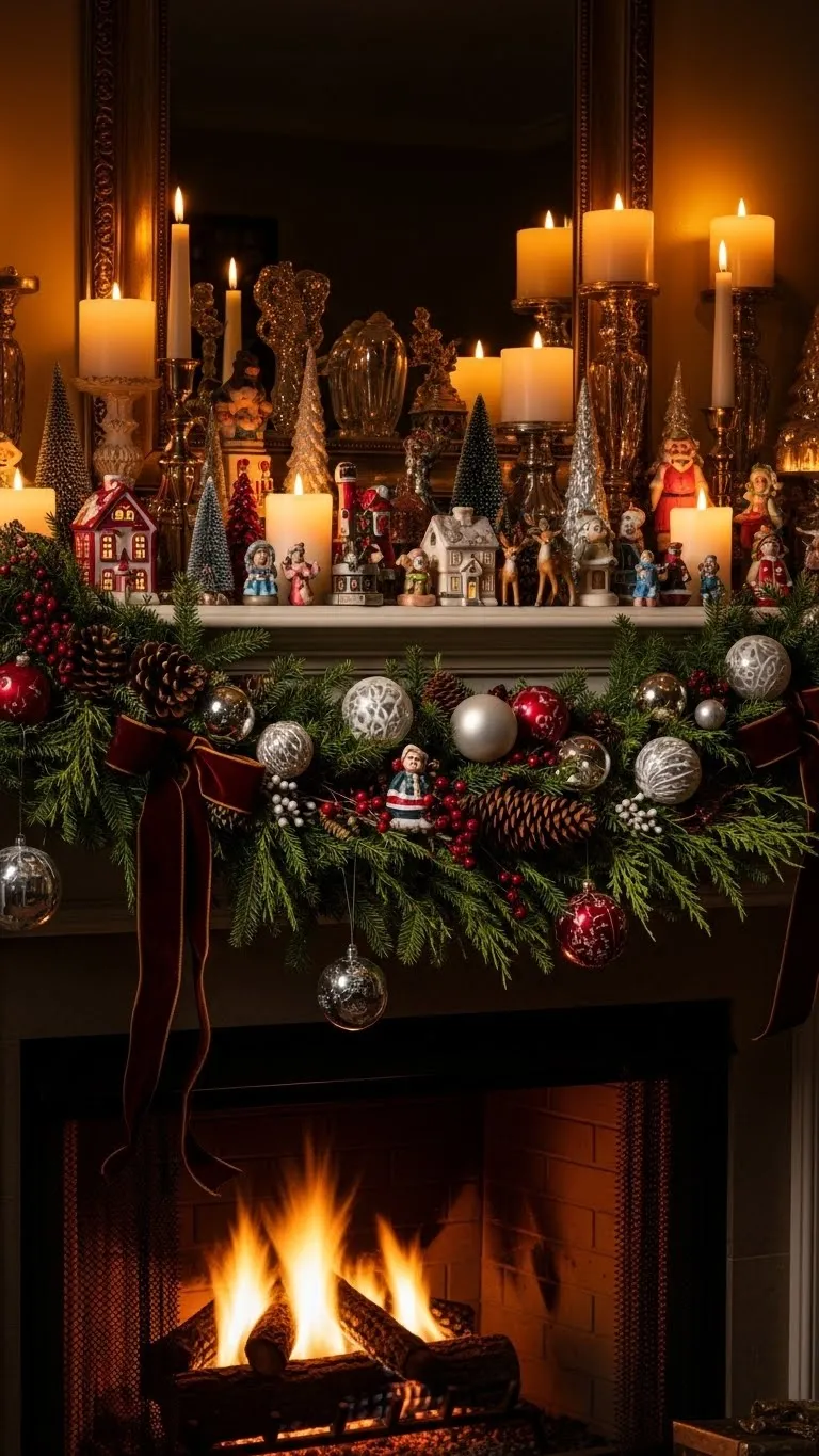 Layer different decorations for visual interest. Start with a garland, then add candles, ornaments, and figurines. Vary heights and textures for depth. Use inexpensive items like pinecones or DIY elements to fill gaps. Layering makes your mantel feel full and festive without clutter. This approach creates a curated look even on a budget and keeps the display dynamic.
