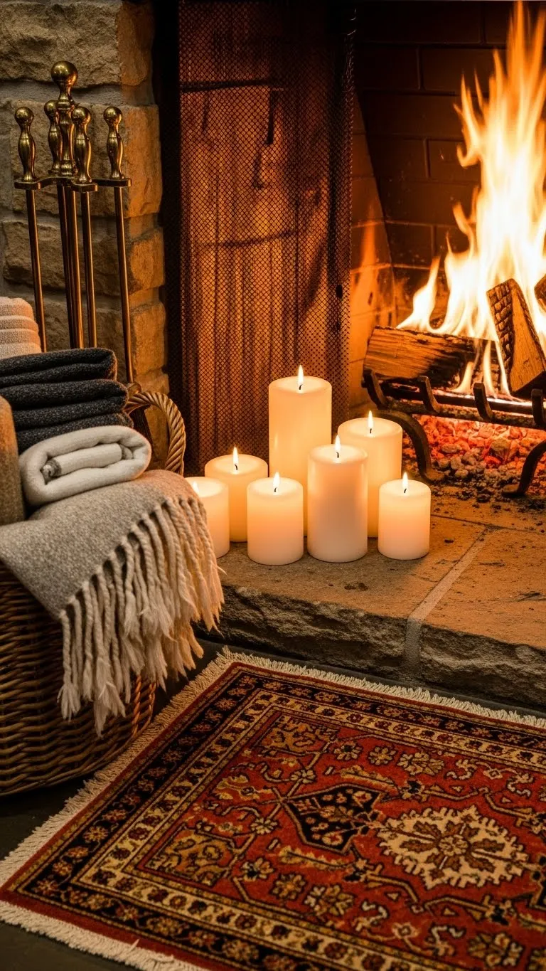 Candles instantly create a warm atmosphere. Group different heights together for visual interest. Use holders or trays to protect your mantel from wax. Add a few sprigs of greenery or berries for color. LED candles work well if you want safety and convenience. Lighting them in the evening adds a cozy and festive vibe, making your fireplace feel like the heart of the home.