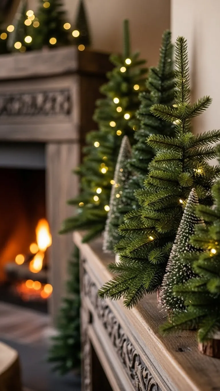 Mini Christmas trees are perfect for a mantel or hearth. Mix sizes and shapes for a playful look. Add small ornaments, ribbon, or tiny lights. These mini trees create a layered festive display without overwhelming the space. For a DIY twist, make trees from paper cones or twine. They’re affordable, lightweight, and easy to rearrange as needed, keeping your fireplace fresh and inviting.