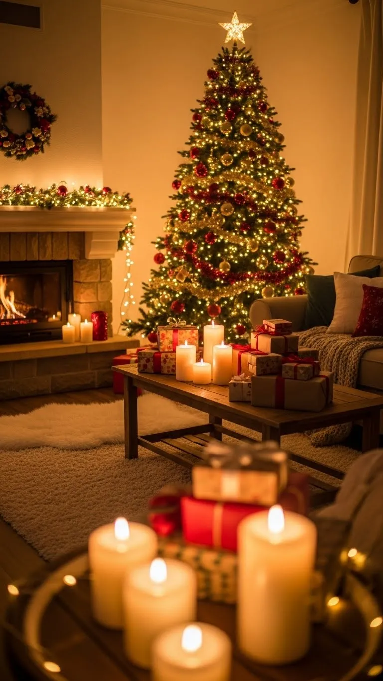 Even if your fireplace isn’t in use, decorate it with garlands, candles, and stockings. Add fairy lights for warmth. This creates a cozy focal point in your living room. DIY options like hand-painted stockings or homemade garlands add personality without spending much.