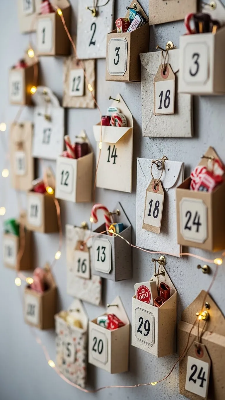 An advent calendar is both decorative and interactive. Use envelopes, boxes, or small bags. Add treats, notes, or small toys inside. Hang on a wall or string across a room with twine and clothespins. DIY versions allow personalization with colors, patterns, and small trinkets. This festive touch adds charm and engages the whole family throughout December.
