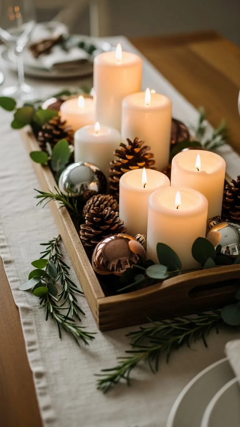 Centerpieces don’t have to be expensive. Arrange candles, pinecones, ornaments, or fresh greenery on a tray. Add height with small candleholders or vases. DIY ideas include painted pinecones or small branches sprayed with glitter. This creates a festive table instantly and can be adapted to any room or budget. Layering natural elements makes it feel warm and inviting.