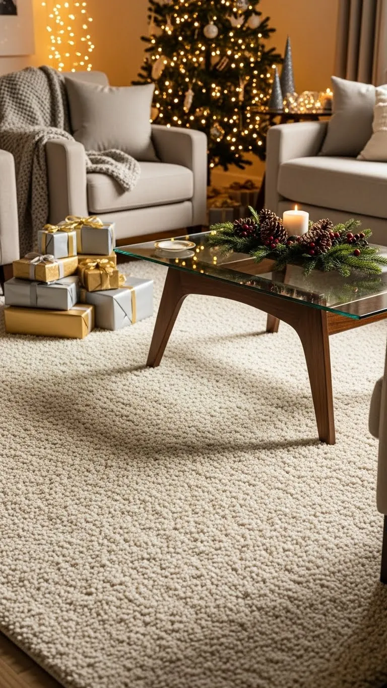 A soft rug grounds the room and adds warmth. Choose neutral colors so you can reuse it after the season. Look for affordable rugs that feel soft underfoot. If your room feels cold, a rug helps soften the space. Pair it with warm lighting and blankets for a calm setup. You can place a small rug under a side table if your room is small. Vacuum often so the fibers stay fresh. Rugs also help sound feel softer, making gatherings feel calm. You do not need a large rug; even a medium one works well for most rooms.