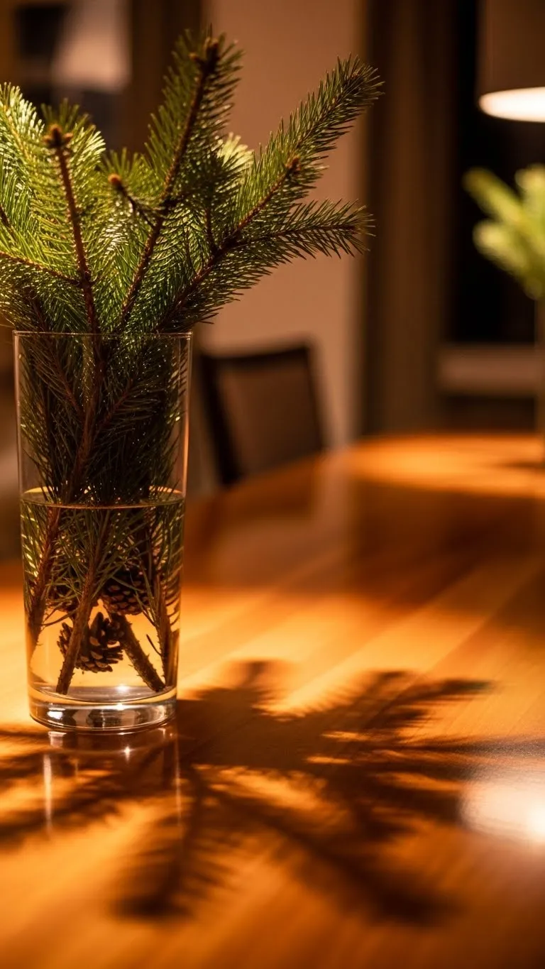 Vases hold more than flowers during the season. Fill them with pine branches, twigs, or dried berries. The natural texture looks calm and clean. You can gather branches locally for free. Trim them to different heights for a relaxed shape. Place vases on side tables, entry tables, or mantles. Add a few small ornaments if you want color. Clear vases show the stems nicely. This idea works well if you prefer a natural theme. It fills empty corners without feeling heavy.