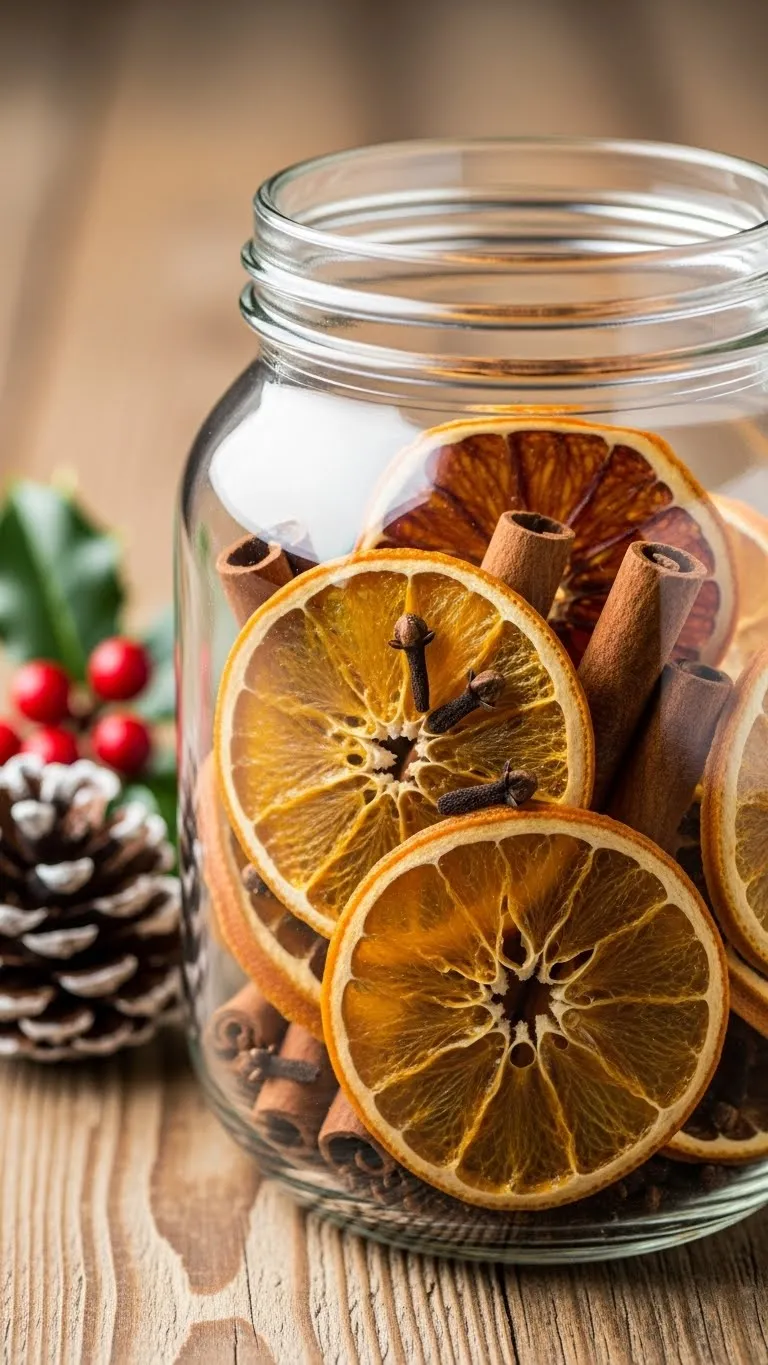 Scent jars are easy and budget-friendly. Fill clear jars with dried fruits, spices, or pine sprigs. The mix looks nice even without strong fragrance. Drying oranges at home is simple: slice thin, bake on low heat, and cool. Add cinnamon sticks or star anise for color. Place jars near windows, shelves, or coffee tables. You can tie ribbon around the top for a soft touch. The jars look festive without requiring power or upkeep. Make several for different rooms. Guests often notice the subtle scent, and the jars double as decor. This idea works well for small spaces or when you want something natural-looking.