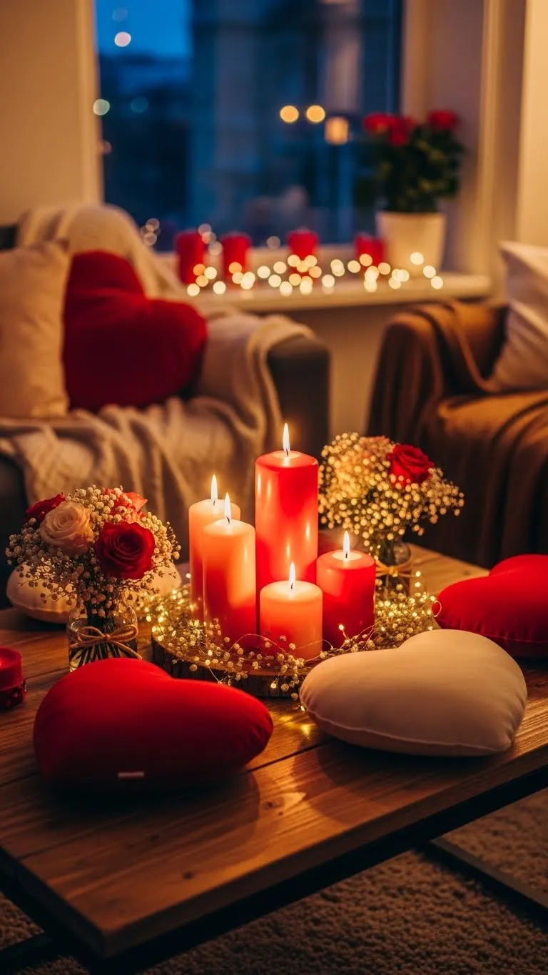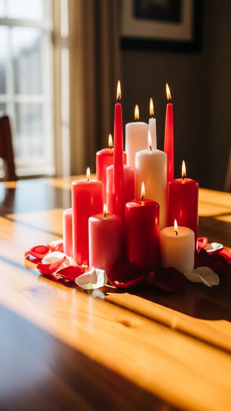 Create a romantic centerpiece using candles of different heights. Place them on a tray or directly on the table. Scatter a few rose petals or small faux flowers around them. You can even use mason jars or glass votives to hold candles, which adds charm without extra cost. Light the candles during meals or evening gatherings to add a warm, flickering ambiance. Candle clusters are easy, affordable, and instantly elevate the mood of any room.
