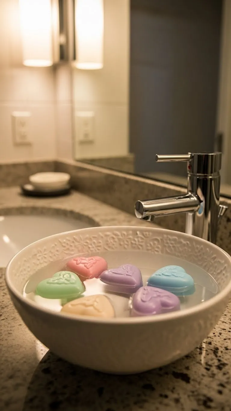 Add heart-shaped soaps to bowls or trays in the bathroom. This adds a subtle, decorative touch. It’s affordable, functional, and instantly festive for Valentine’s Day.