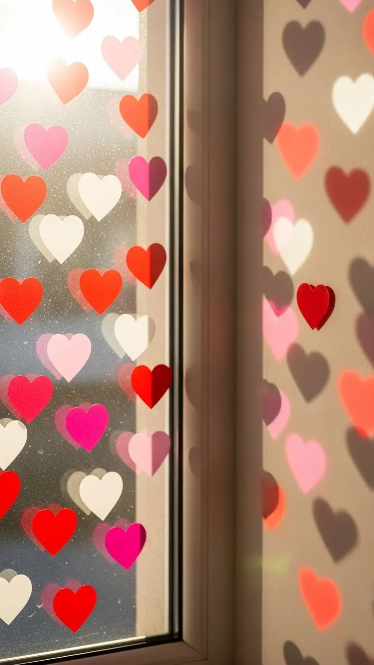 Use heart-shaped window clings for a playful, inexpensive decoration. Stick on windows or glass doors for a cheerful, festive vibe. This temporary and reusable option adds charm without permanent changes.