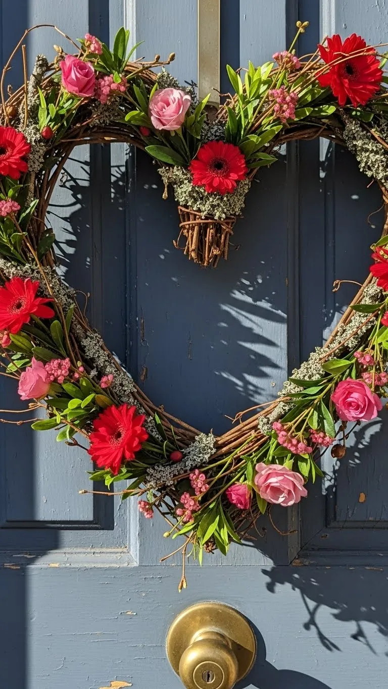 Craft a heart-shaped wreath using twigs, flowers, or felt. Hang on your front door or interior walls. Add ribbon, small flowers, or greenery for texture. This DIY project is affordable and customizable, allowing you to choose colors that fit your style. It adds a warm, welcoming touch for guests and family alike.