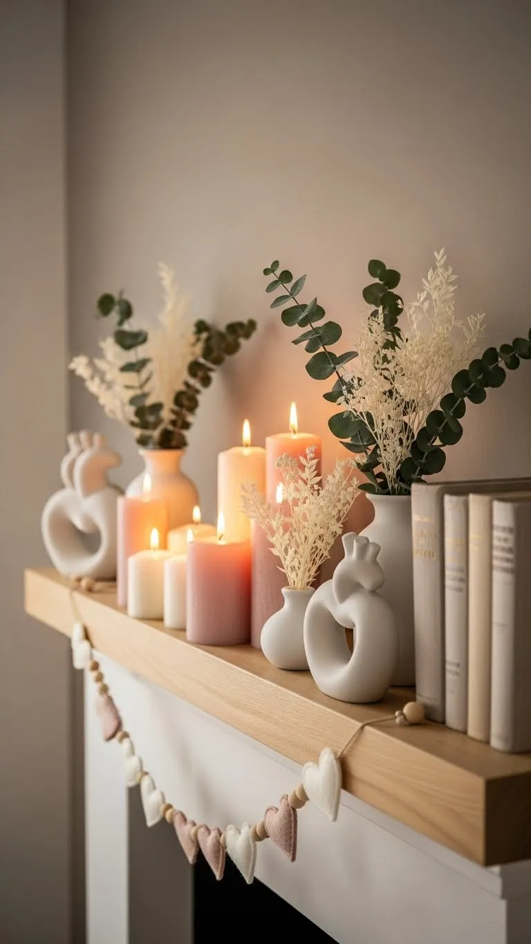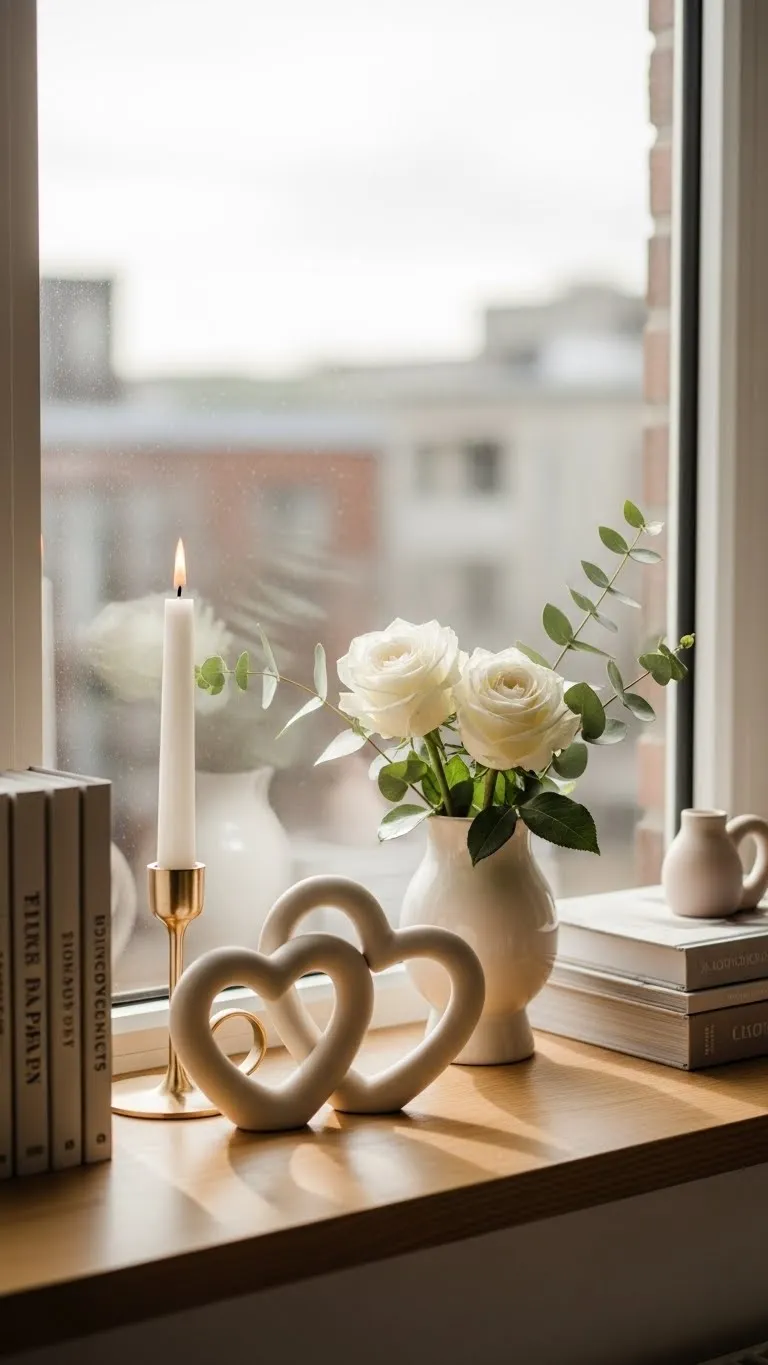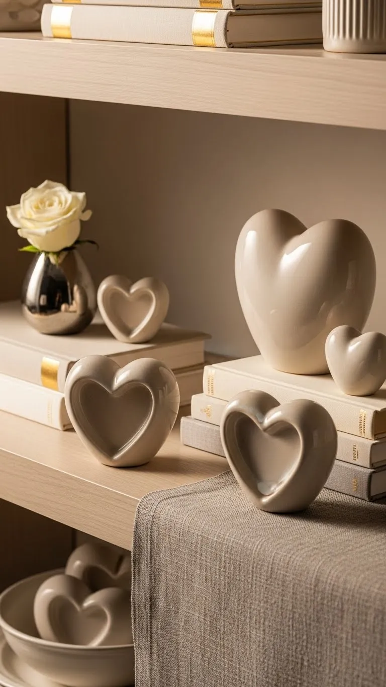 Hearts can feel subtle when done right. Choose ceramic pieces in white or soft blush. Avoid shiny or bright finishes. Small hearts on shelves or tables add a gentle nod to the season. Limit the number you use. One or two pieces feel thoughtful. Too many can feel busy. Place them near books, vases, or framed photos. This helps them blend into existing décor. Budget tip: Craft stores often sell plain ceramic shapes. Paint them with matte paint. DIY adds a personal touch and costs little. Keep the design simple. Let shape and color speak quietly.
