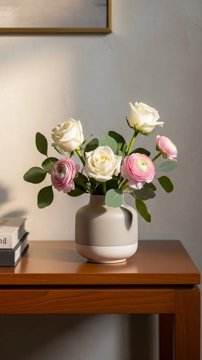 Flowers can feel elegant when kept simple. Choose one type of flower in a neutral shade. White, blush, or pale pink work well. Use a simple vase with clean lines. Cut stems at different heights. This adds shape without fuss. Place arrangements on side tables or counters. One or two arrangements are enough. Budget tip: Use grocery store flowers. Split one bunch into small vases. DIY idea: Use jars or pitchers as vases. Keep the focus on shape and color. Less truly feels calmer here.