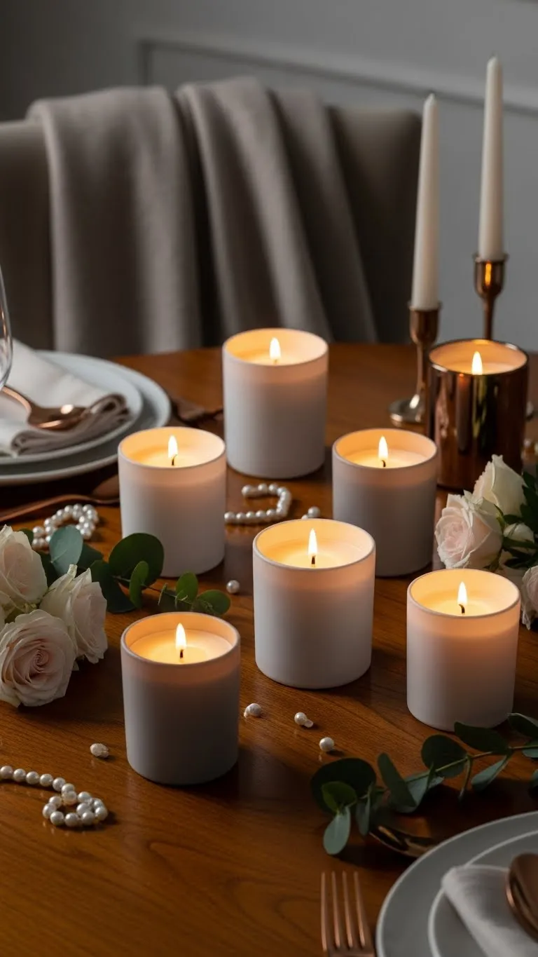 Choose candles with gentle scents. Neutral jars suit any style. Place them around the home. Avoid strong fragrances. Light scents feel calming. Battery options work too. Budget tip: Buy basic candles and reuse jars. DIY: Pour wax into simple containers. Candlelight adds warmth easily.