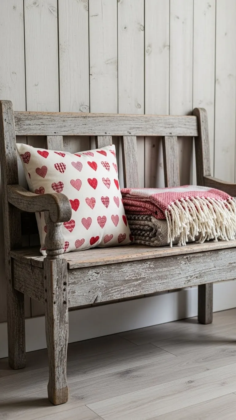 Benches are easy to style. Add one pillow with a heart detail. Fold a throw beside it. This creates a cozy spot. Keep colors muted. This setup works in halls, bedrooms, or entryways.