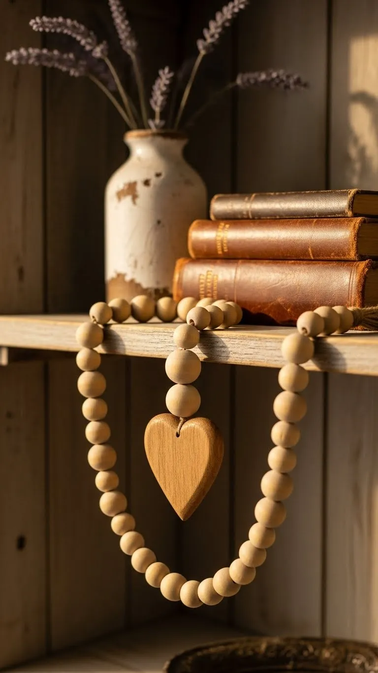 6. Wooden Bead Garland With Heart Accent
