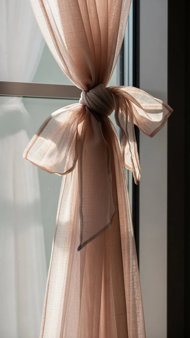 Sheer fabric softens light. Tie loosely. Budget tip: Use scarves. Remove easily after February.
