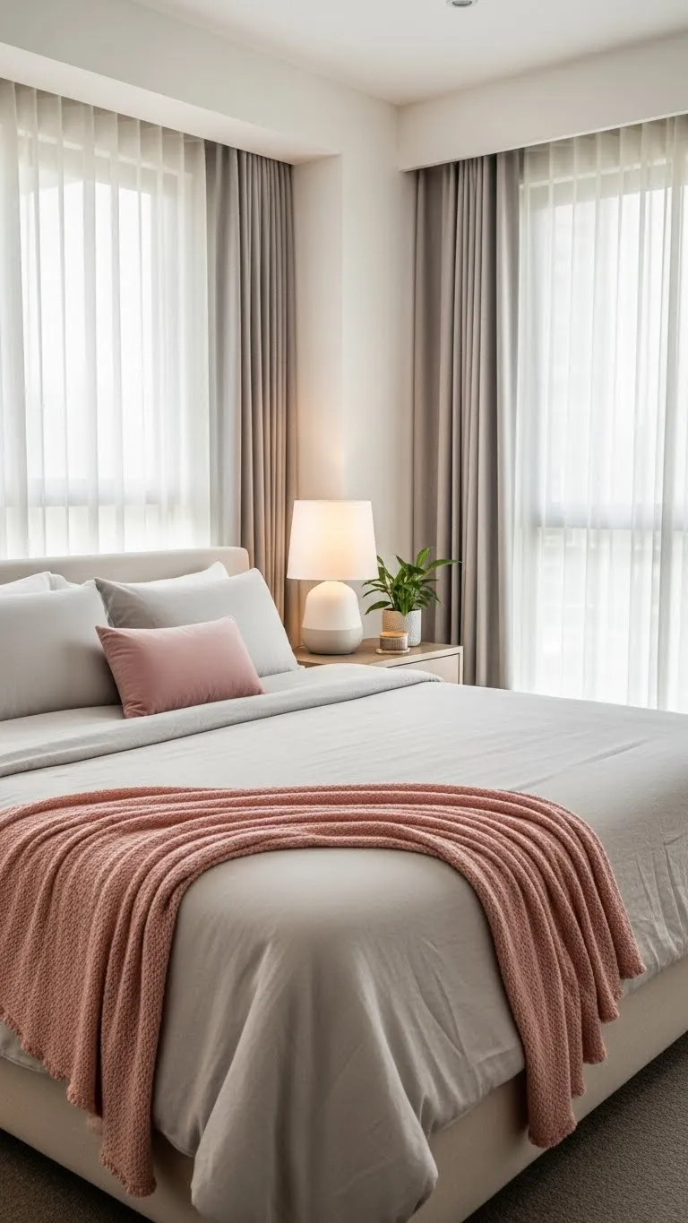 6. Neutral Bedding With a Blush Accent Layer