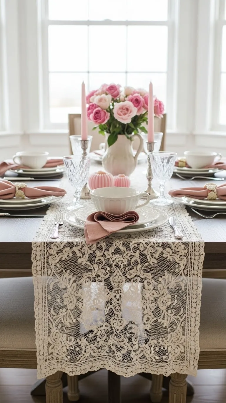 1. Lace Table Runners with Soft Pink Accents