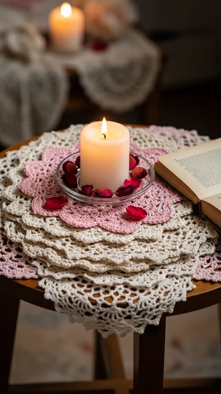 Crochet doilies add softness. Layer them under trays or candles. Use neutral tones. If doilies feel dated, layer over wood or linen. Thrift stores often sell them cheaply. They store flat and last for years.