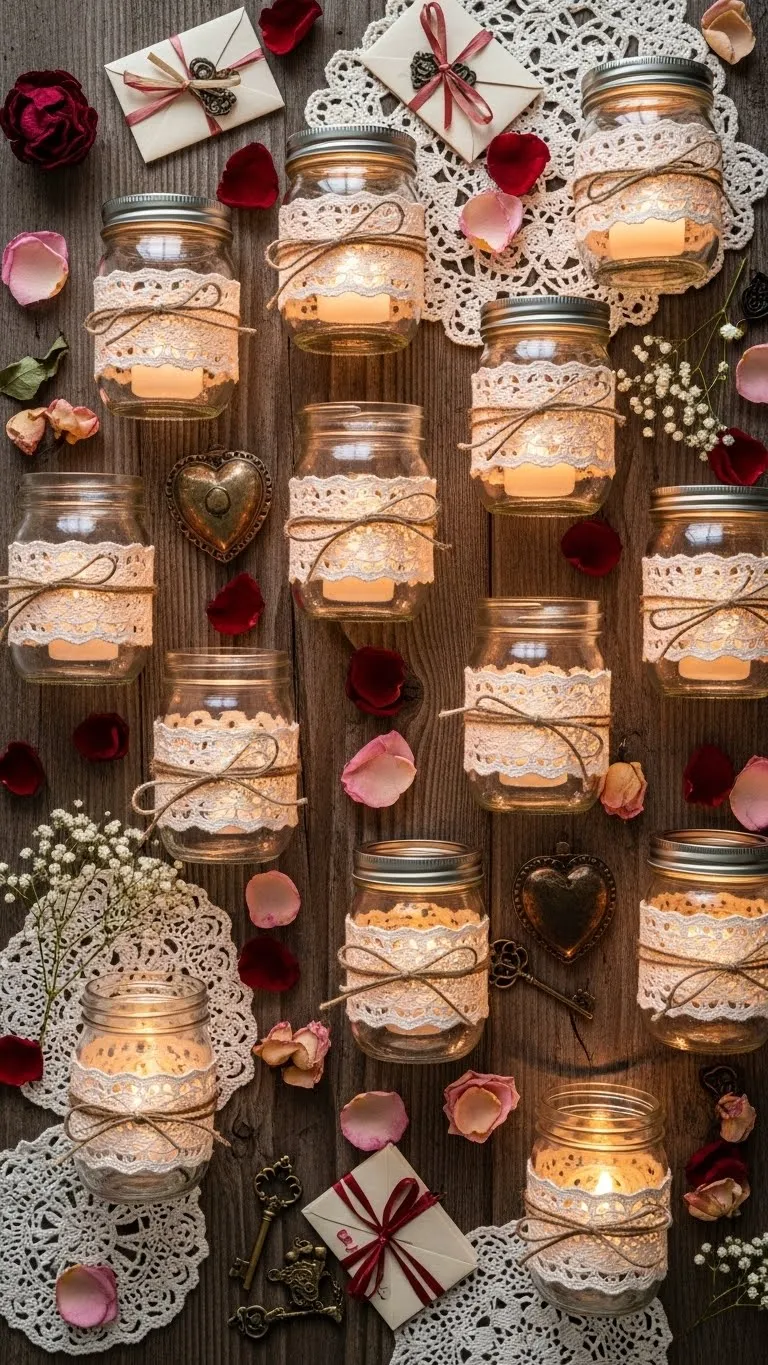 4. Mason Jar Candle Holders Wrapped in Lace