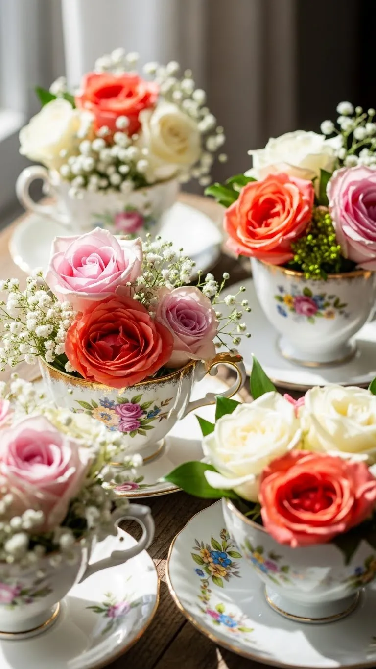 7. Vintage Teacups Used as Floral Holders