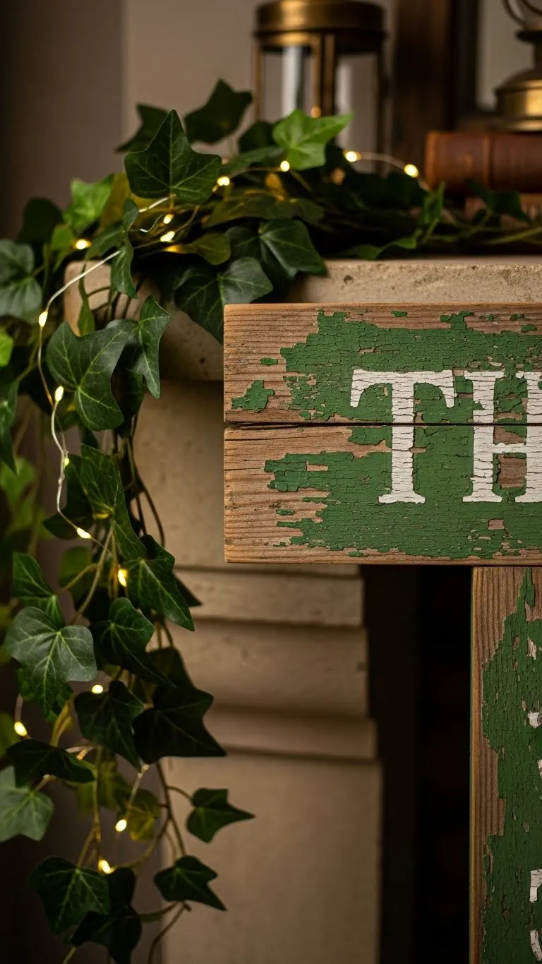 Weathered wooden signs add charm without feeling too bold. Their worn paint and rough edges look warm during the holidays. Place them on a mantel or shelf. You can find them cheap at flea markets or craft fairs. For a simple DIY, sand an old board and brush it with white or red chalk paint. Add greenery around it for softness. These signs fill empty wall spaces easily. They bring a calm, cozy feel to your holiday rooms.