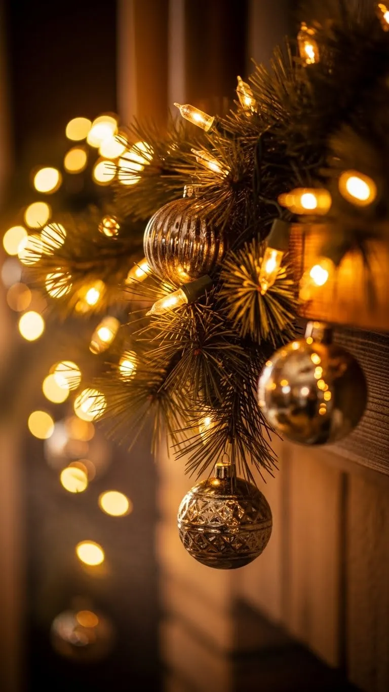 Metal tinsel garlands add sparkle without feeling too modern. The older styles shine softly and suit warm lighting. Drape them on tree branches or across a fireplace. Try mixing silver and gold for a gentle contrast. You can buy these garlands secondhand for low prices. If the strands look messy, trim them with scissors for a cleaner shape. A DIY trick is weaving the garland with a simple string of wooden beads. This softens the shine for a balanced look. These garlands work especially well in smaller rooms because they reflect light. They help bring a classic holiday glow to your home.