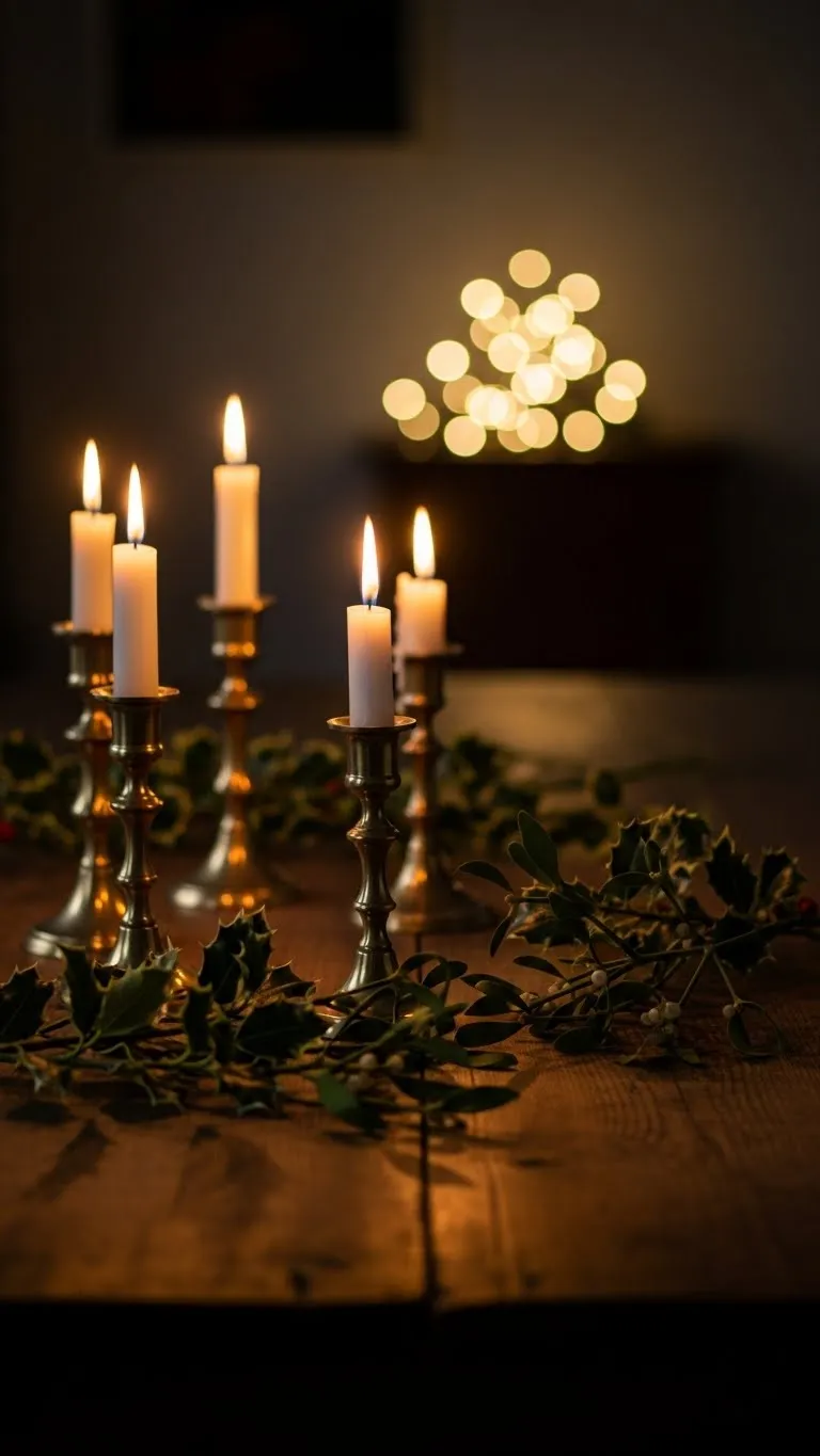 Antique candle holders bring warmth to your holiday setup. Brass or silver styles often show gentle aging that adds character. Place them on a mantel or table with fresh greenery around the base. You can use candle sticks from discount shops to keep costs low. Try mixing tall and short holders for a simple layered look. Add natural items like pinecones or dried berries for extra charm. If you want a quick DIY idea, wrap thin twine around the base. This adds texture without spending extra. Keep candles away from busy spots for safety. These holders create a calm holiday glow that feels classic and inviting.