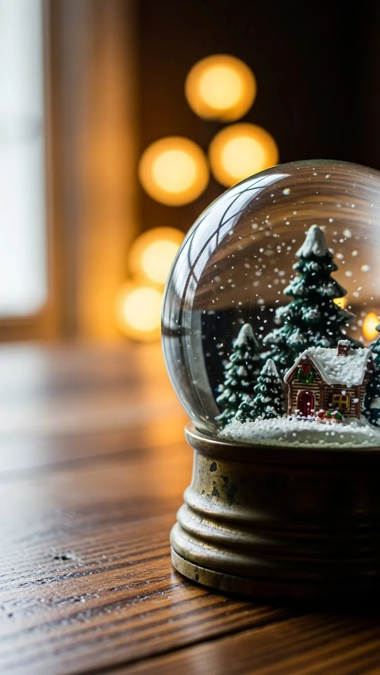 Vintage snow globes add calm movement and charm. Place them on shelves, coffee tables, or mantels. Shake them gently for a snowy moment. You can find them at antique shops for fair prices. Clean the glass with a soft cloth. A DIY idea is grouping three globes together for a stronger display. Add greenery around them for warmth. These globes help make your space feel peaceful and holiday-ready.