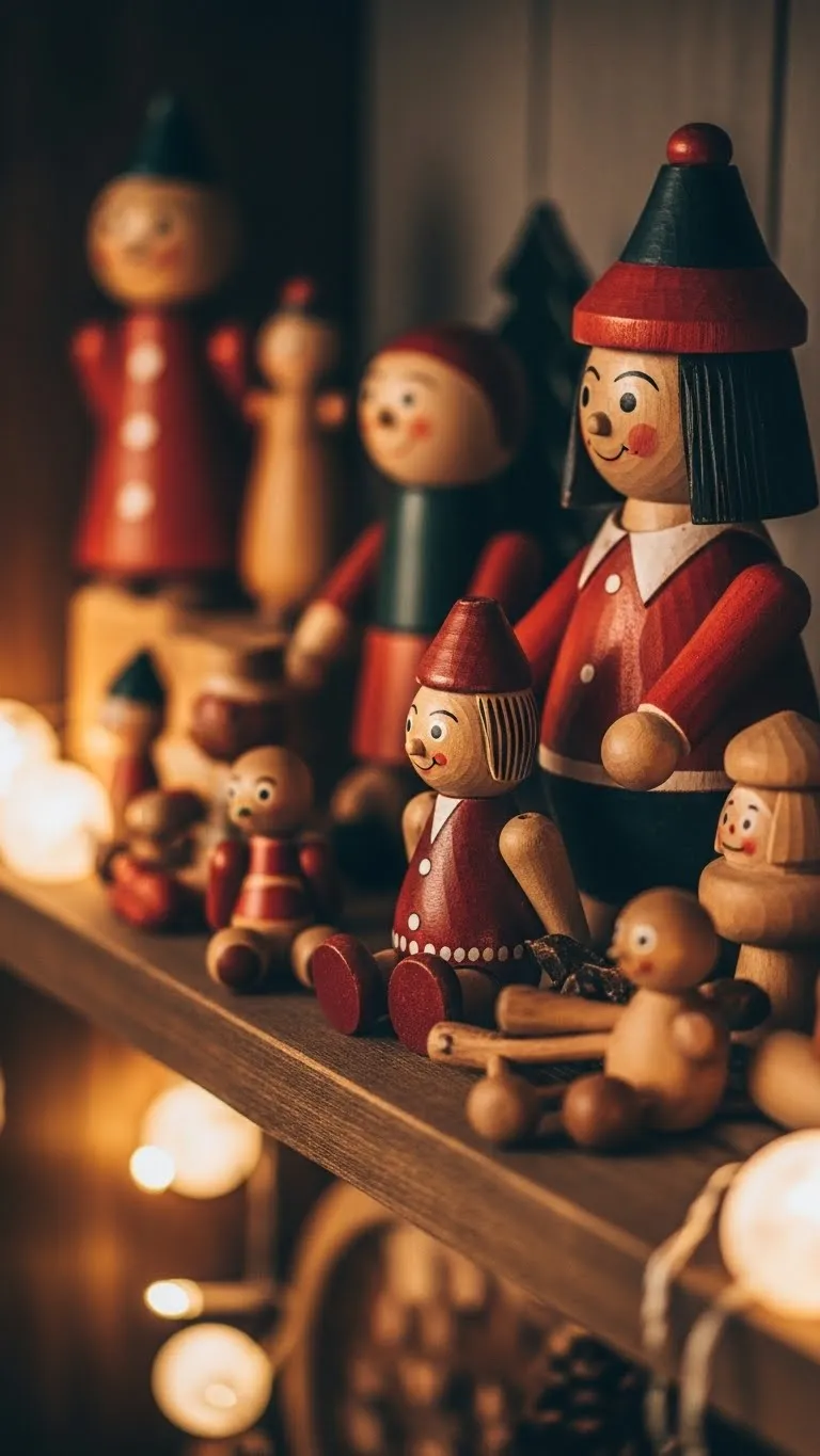 Old wooden toys bring a playful charm to your holiday space. Place them on shelves, under the tree, or on a side table. Their worn shapes add warmth without feeling fancy. You can find these toys at flea markets for a small cost. Clean them with a damp cloth to keep their natural look. Add greenery around them to tie in the season. A simple DIY idea is placing a toy truck filled with tiny pine branches. This makes a sweet accent without big effort. These toys help tell stories from earlier times. They also work well with soft lighting and neutral colors.
