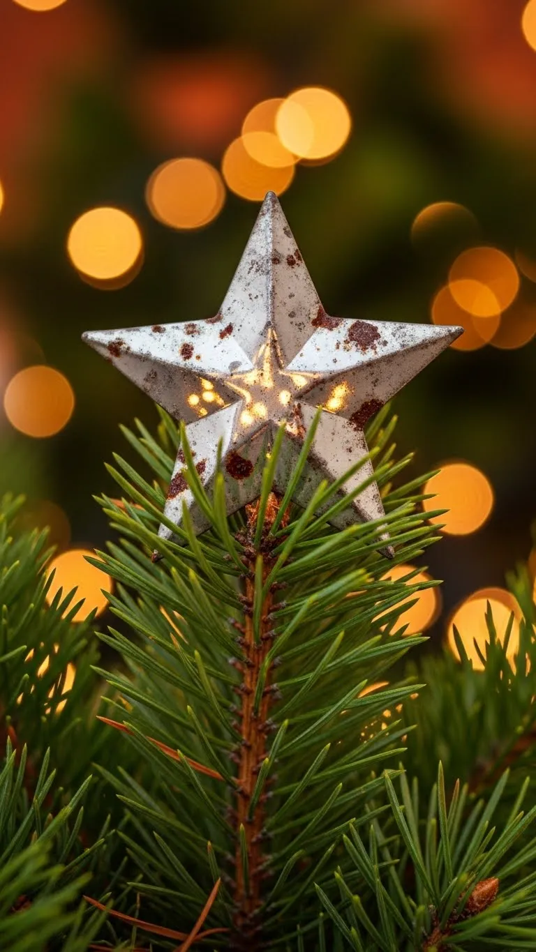 Tin star toppers add a simple touch to your tree. Their aged texture works well with old ornaments. You can find inexpensive tin stars at antique shops or online. Clean them lightly with a dry cloth to keep their patina. Secure the star with floral wire for stability. A DIY trick is brushing a bit of white paint on the edges for a snowy look. This makes the topper feel more holiday-ready. These stars help your tree feel classic and warm.